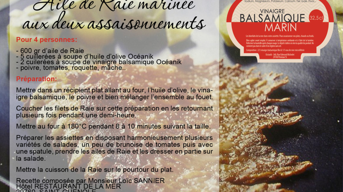 Ailes de raie marinées aux deux assaisonnements et au citron vert 15 janvier 2017 – Publié dans: Épicerie Marine, Recettes – Mots clés: Aile de raie, ailes de raie, citron, citron vert, Cuisine, facile, Huile d'Olive, idée recette, originale, Raie, Recette, Vinaigre balsamique, vinaigre marin