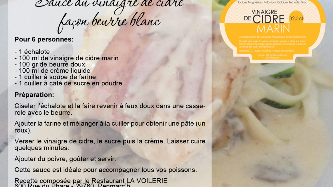 Sauce au vinaigre de cidre façon beurre blanc 15 juin 2017 – Publié dans: Épicerie Marine, Recettes – Mots clés: Cuisine, Recette, Restaurant La Voilerie, Vinaigre balsamique