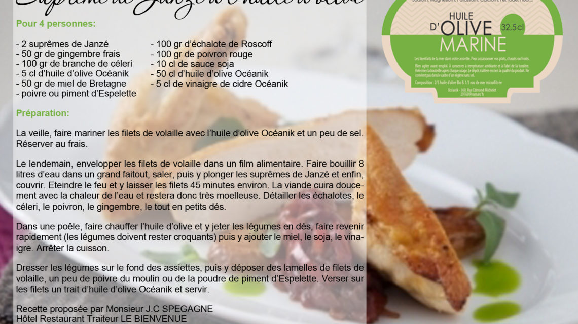 Suprême de Janzé à l’huile d’olive 15 avril 2017 – Publié dans: Épicerie Marine, Recettes – Mots clés: Cuisine, Huile d'Olive, Recette, Vinaigre de cidre